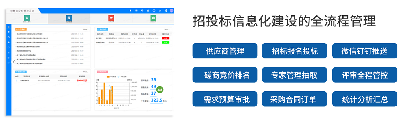 招投标全流程信息化管理,信息全公开、评标全封闭